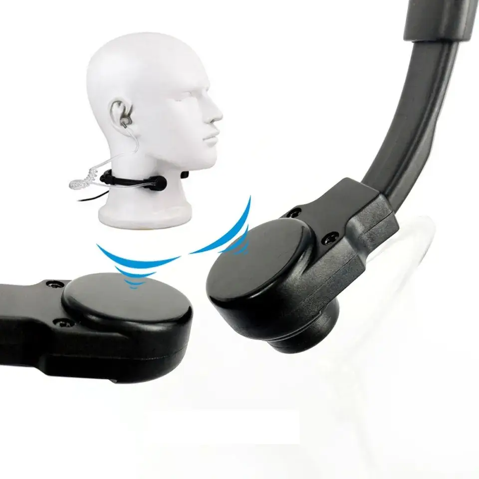 На другому дроті розміщено ларингофон з регульованим притиском на горло. Чутливий ларингофон забезпечує зняття звуку з голосових зв’язок користувача без традиційного натискання клавіші РТТ.